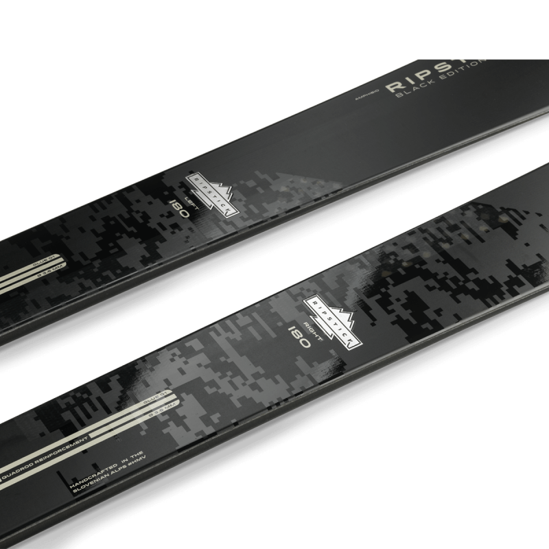 Le Ripstick 96 Black Edition combine polyvalence et stabilité pour dominer toutes les conditions que la montagne peut offrir. Similaire au comportement d’un ski all-mountain sur neige dure, il flotte et se met en dérive tel un ski big-mountain dans les neiges douces. Le noyau Tubelite Woodcore, composé de deux tiges de carbone parallèles aux chants du ski, est optimisé par la nouvelle technologie QuadRod : deux tiges de carbone additionnelles placées en spatule et talon apportent plus de répondant avec une sensation de flex équilibrée. À cela s’ajoute la technologie Carbon Line : un tissage de carbone maillé situé le long des bords intérieurs de la spatule et du talon, renforcé par une couche supplémentaire de carbone au centre du ski. On obtient ainsi un touché de neige plus doux avec un excellent flex pour des transferts d’appuis intuitifs et faciles. Ces deux technologies optimisent l’efficacité du profil asymétrique Amphibio pour décupler l’accroche et la maniabilité de notre shape le plus polyvalent. Une enveloppe noire vient habiller cette construction high tech, donnant à cette arme tout-terrain une allure sophistiquée et furtive.